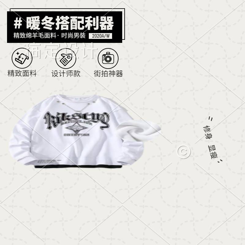潮男复古加绒连帽套头卫衣 冬季 男女同款
