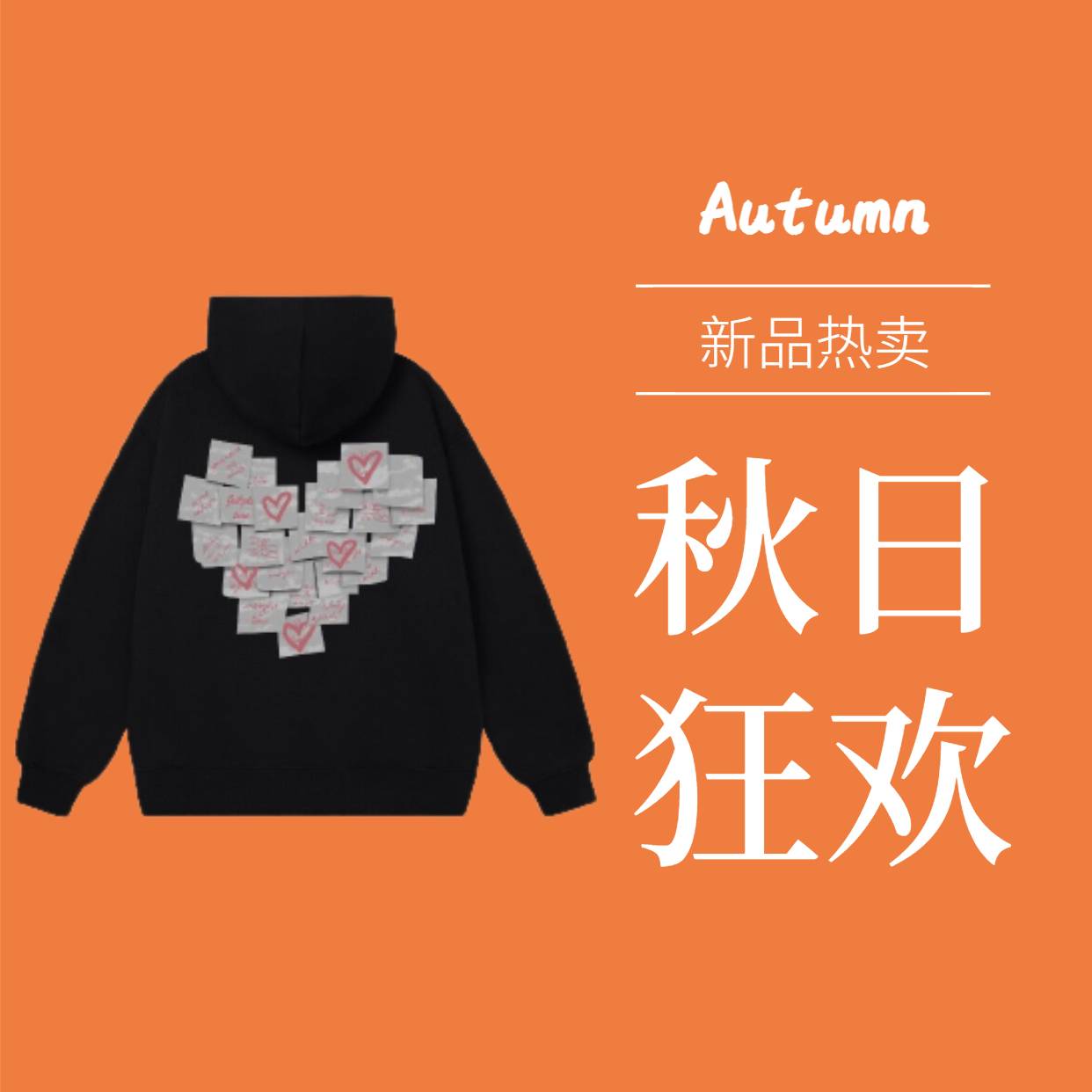 爱心连帽青春活力印花 加绒加厚 情侣同款