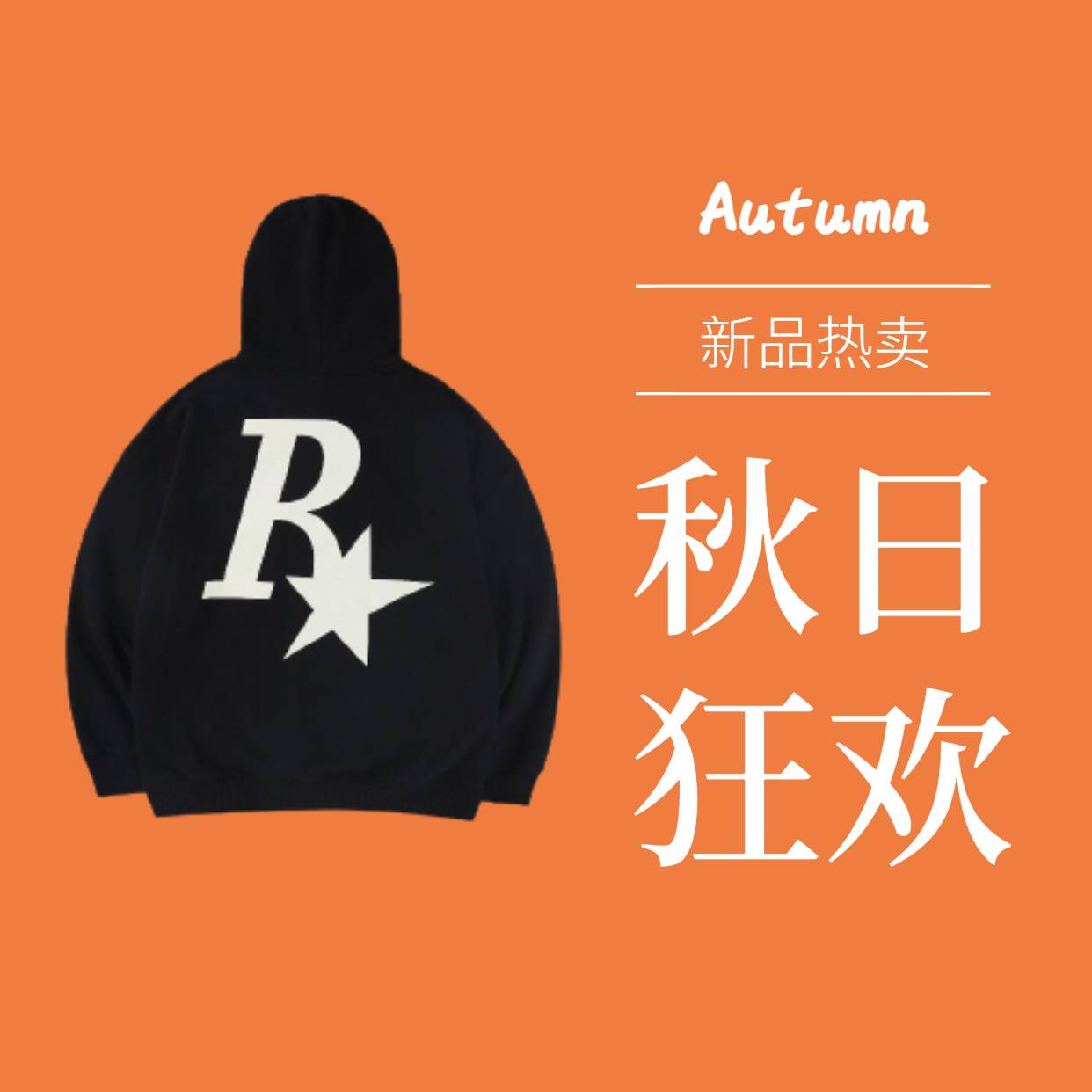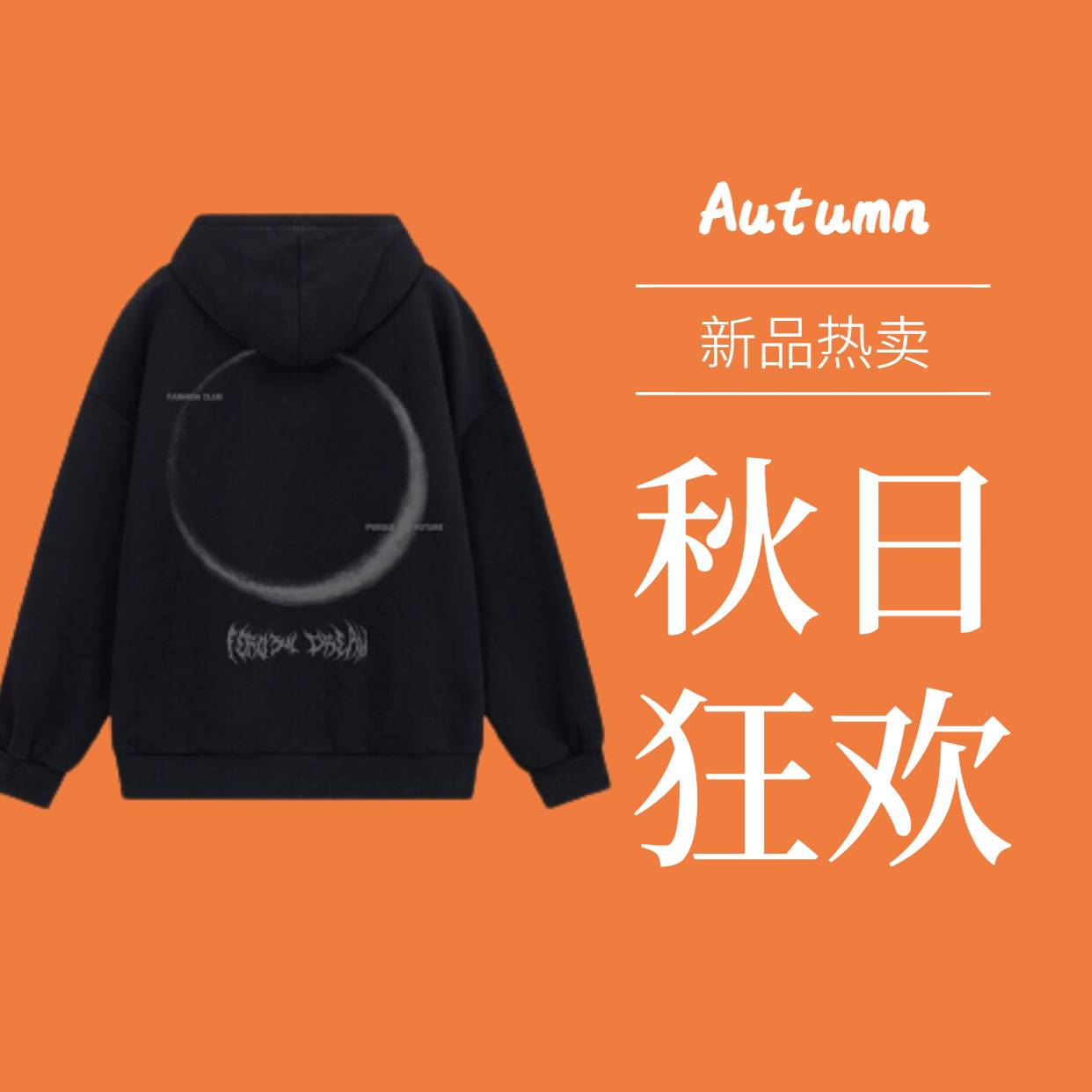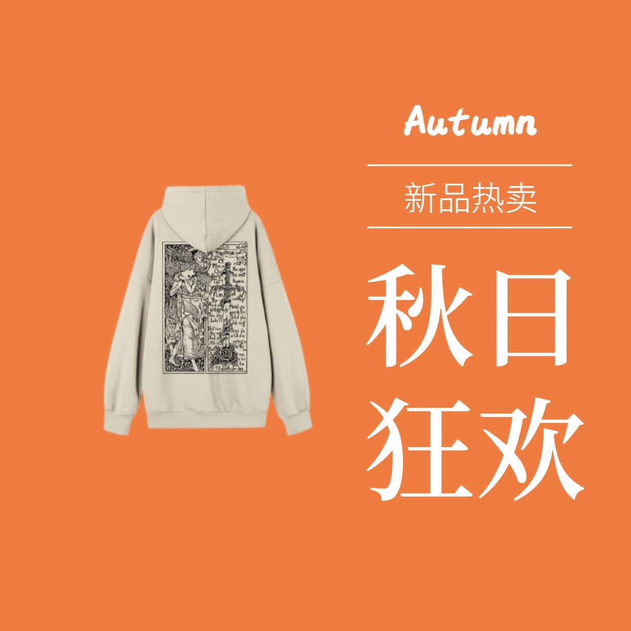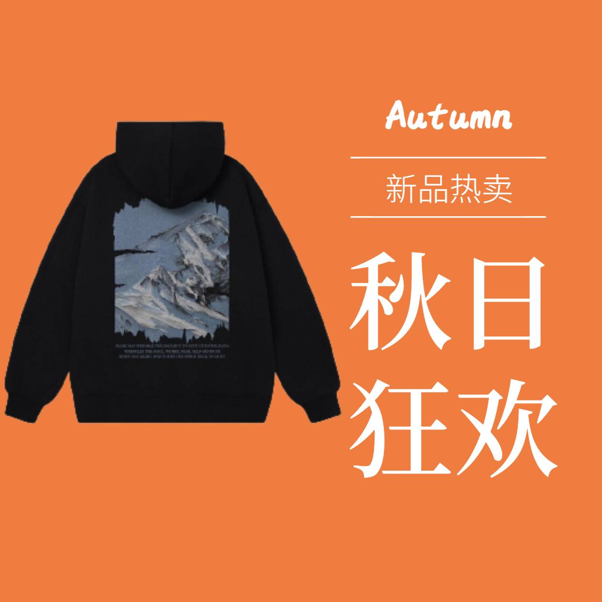 加绒加厚 复古印花连帽卫衣 情侣同款