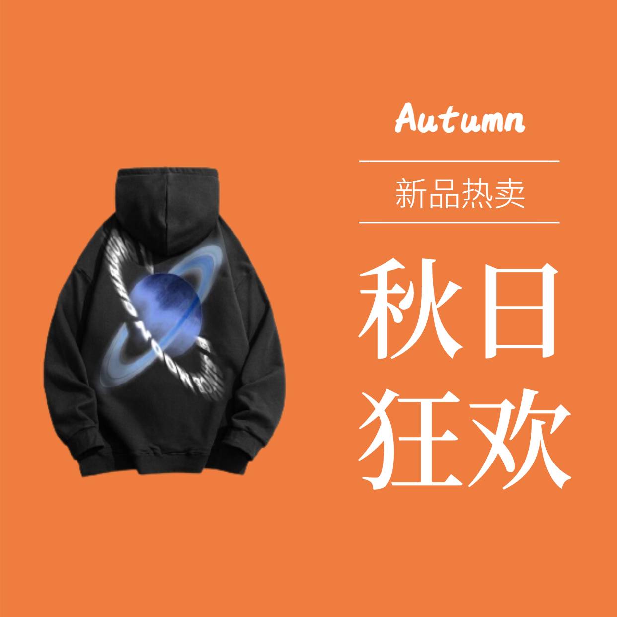 加绒加厚太空字母印花连帽卫衣 情侣同款