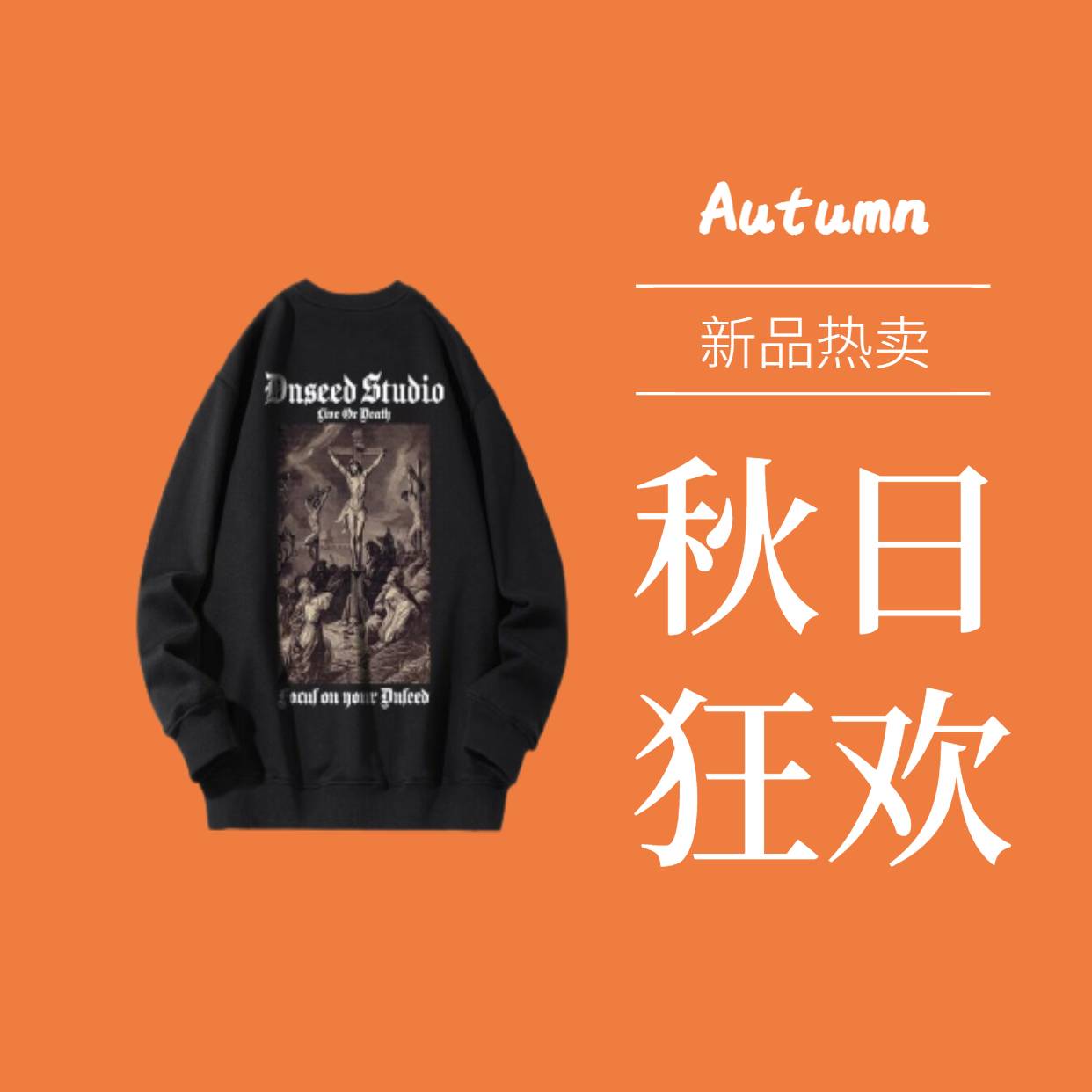 复古印花休闲宽松加绒圆领卫衣 秋季新款