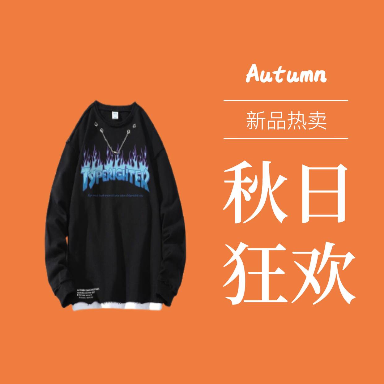 假两件可拆卸链条哥特字母logo印花宽松休闲运动圆领加绒加厚卫衣情侣同款