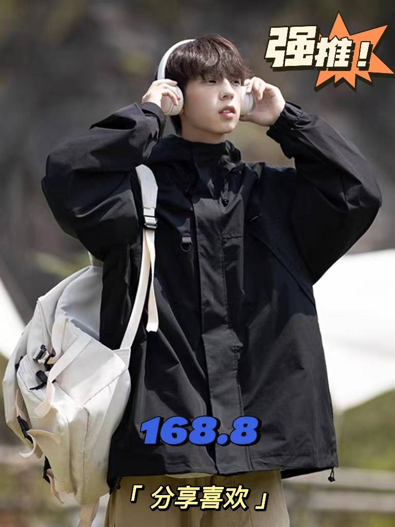 日系防风黑色冲锋衣外套男春季潮牌户外机能工装男生风衣夹克男款