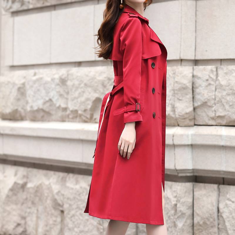 盛宏19秋超正M家经典不易皱 中长款双排扣显瘦气质外套风衣女3078