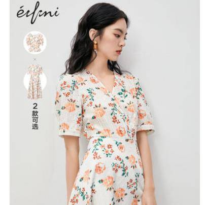 伊芙丽连衣裙2020新款夏季仙女雪纺碎花显瘦夏天遮肉桔梗裙泡泡袖