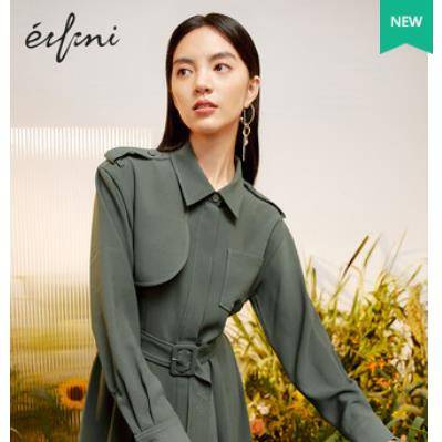 伊芙丽名媛气质收腰A字裙2020新款春秋裙子风衣式两穿工装连衣裙