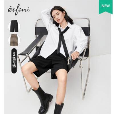 伊芙丽短裤女2020新款秋装韩版黑色裤子中裤直筒高腰薄款休闲裤女