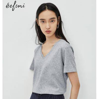 伊芙丽T恤女2020年夏季新款韩版半截袖V领宽松简约白色短袖女体恤
