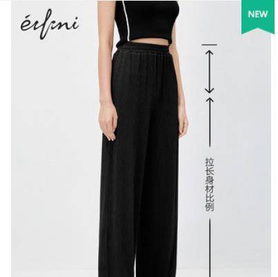 伊芙丽2020秋季新款女士休闲直筒裤宽松针织拖地裤高腰垂感裤子女