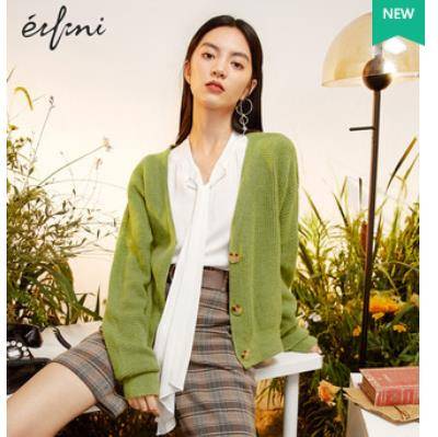伊芙丽针织开衫女春秋长袖2020年新款v领宽松女士针织衫开衫外套