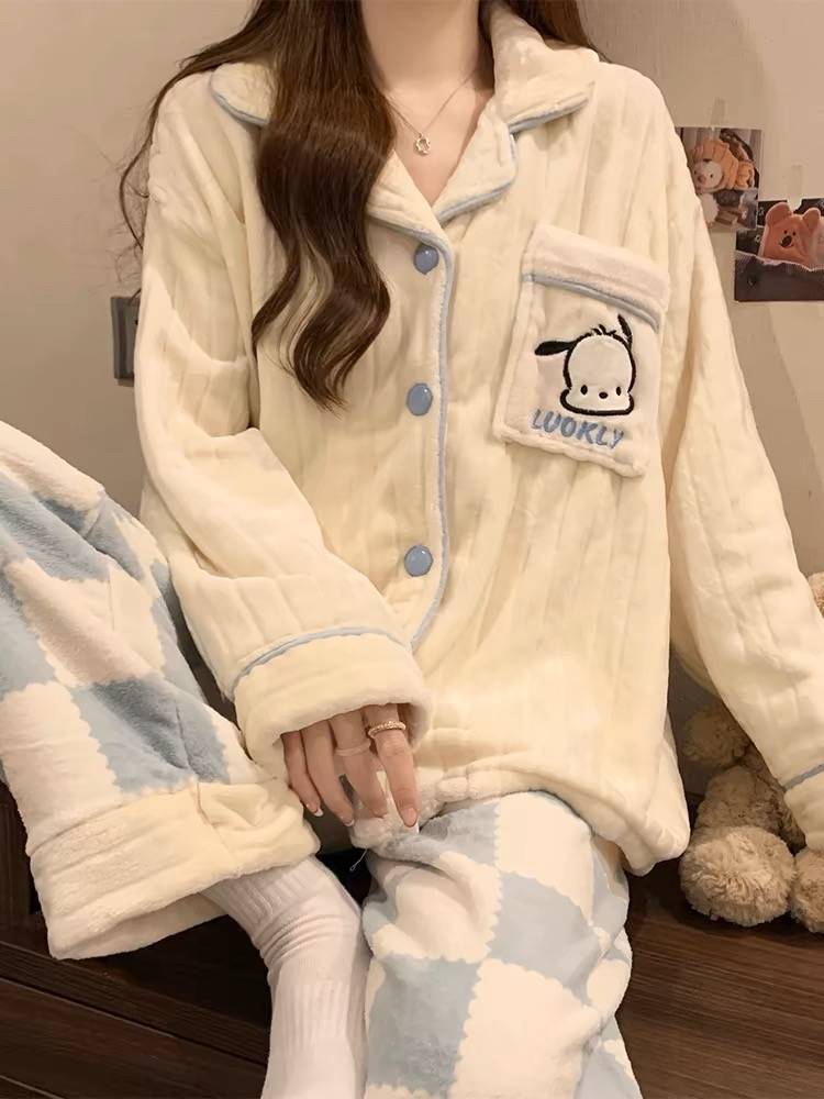 珊瑚绒睡衣女秋冬季加绒加厚2024年新款多巴胺长袖开衫家居服套装