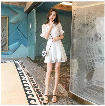 网红女装2020夏季新款韩版雪纺短袖A字裙