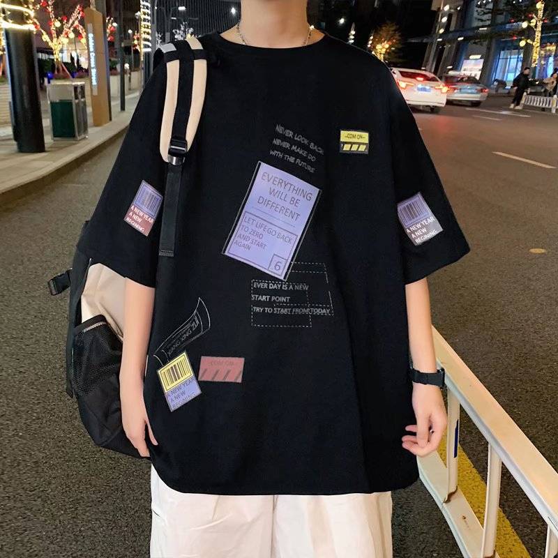 日系简约字母印花长袖工装衬衣男潮牌街头宽松bf风薄外套