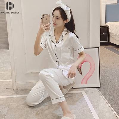真丝睡衣女夏季冰丝绸薄款短袖长裤两件套性感韩版家居服春秋套装