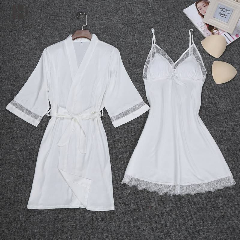 性感睡衣女夏季冰丝绸蕾丝聚拢带胸垫吊带薄款真丝睡裙家居服春秋