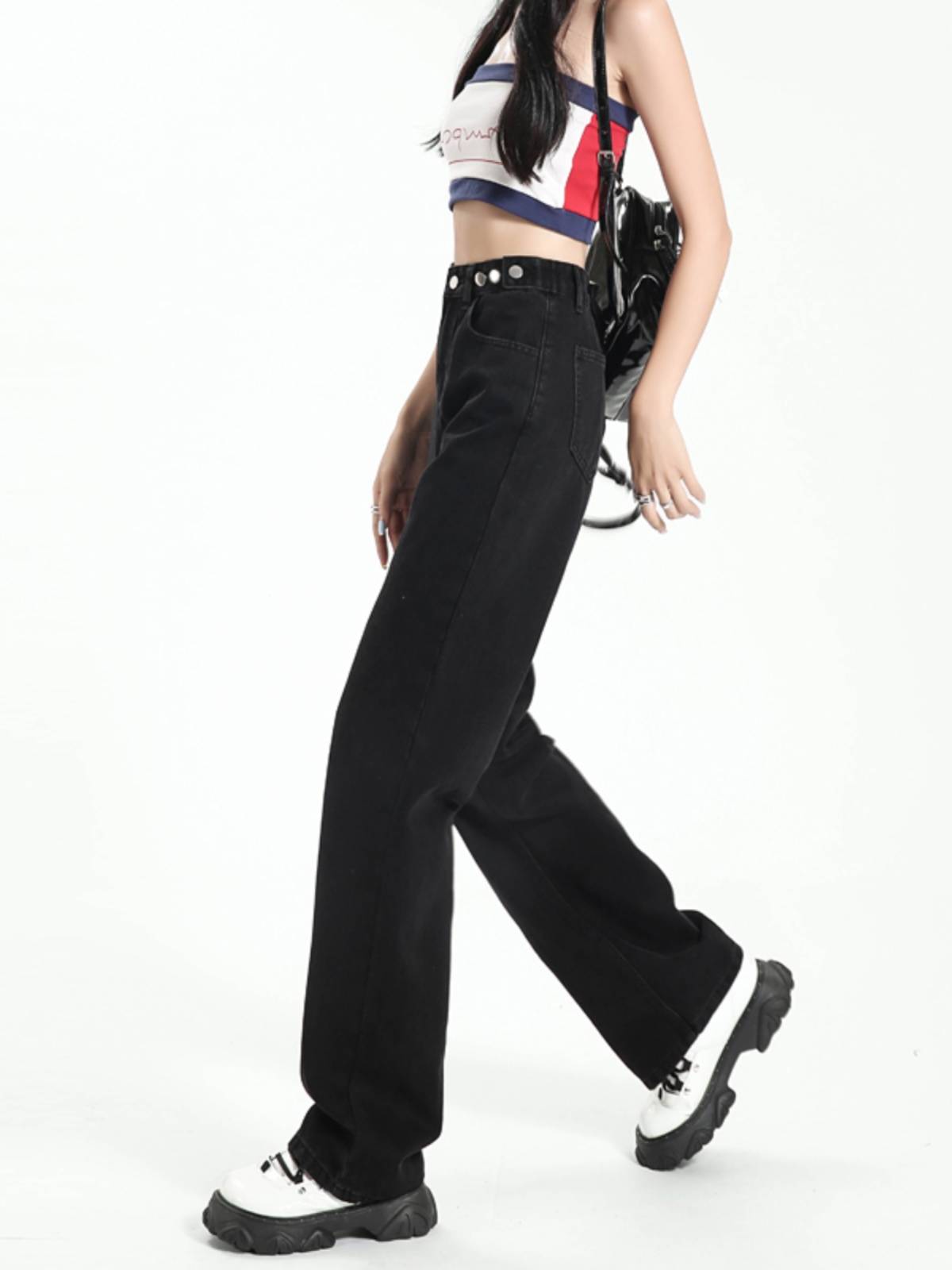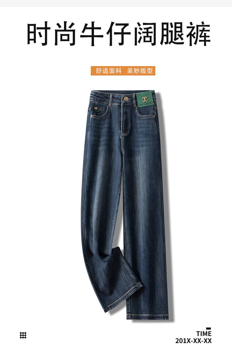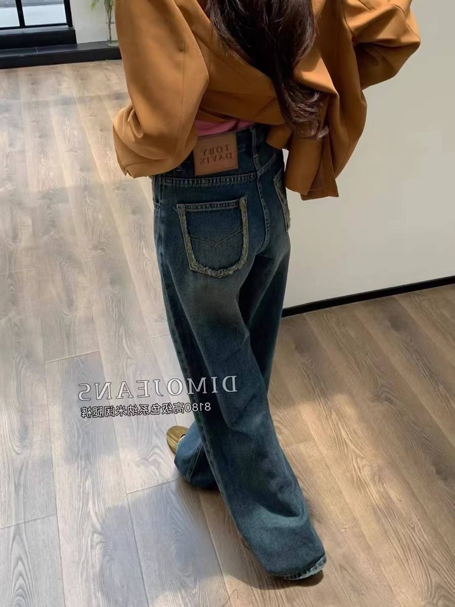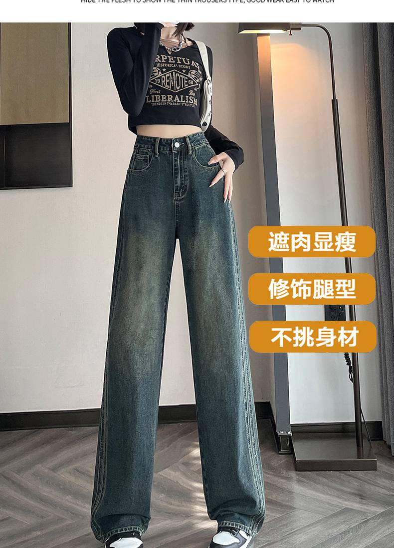 复古纳米灰牛仔裤女秋季2023新款欧货洗水高腰显瘦直筒阔腿拖地裤