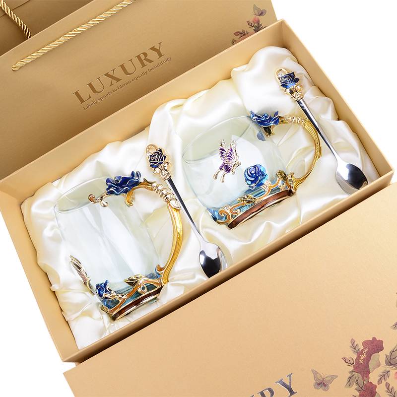 珐琅彩水杯玻璃杯子女家用洛施花舍玫瑰花茶杯套装耐热创意礼物 25.00 已售:0件