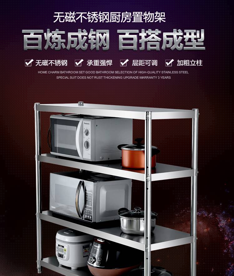 不锈钢厨房置物架落地4多层放锅架子微波炉收纳架储物架家用货架 266.60 已售:0件