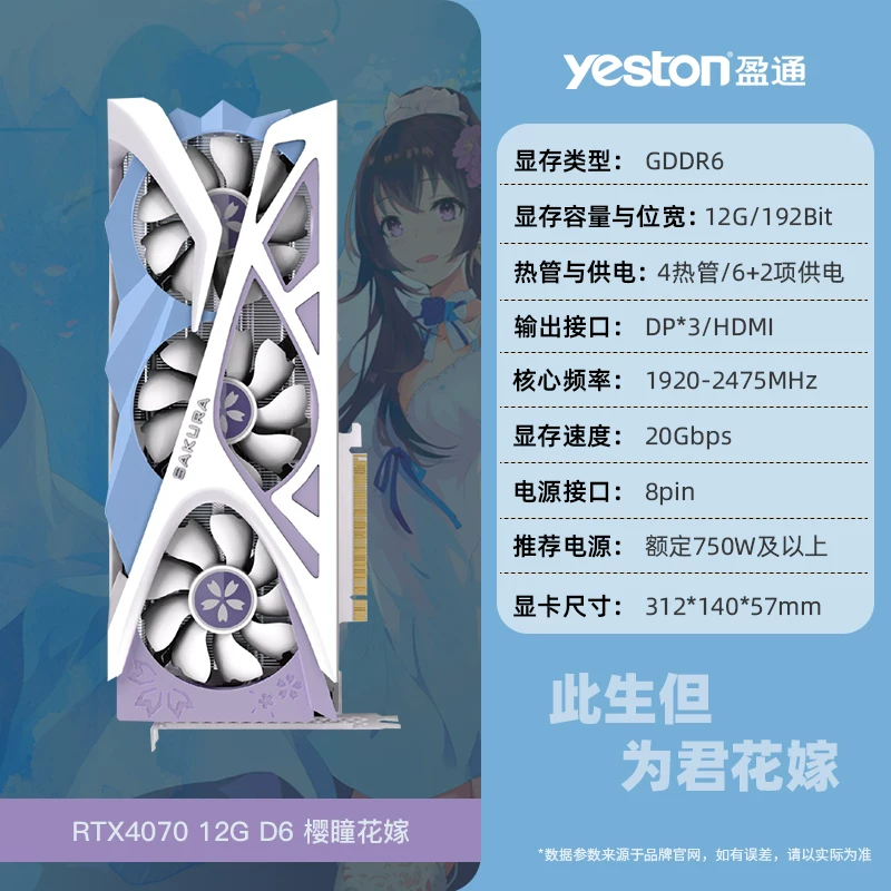 盈通RTX4070Ti SUPER樱瞳花嫁 台式机电脑独立显卡 3999.00 已售:0件