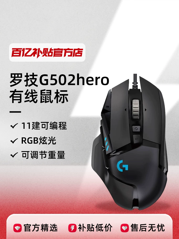 罗技G502hero有线电竞RGB鼠标12000DPI可编程吃鸡专用百亿补贴 179.00 已售:0件