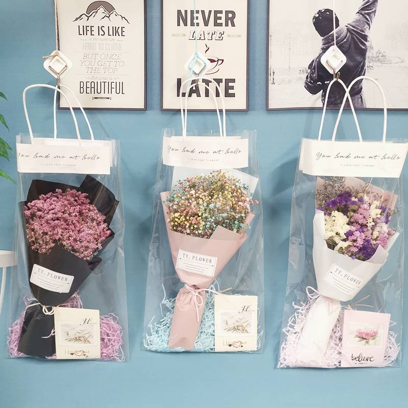 创意干花花束北欧手提袋勿忘我满天星真花摆件装饰生日礼物 10.00 已售:3件