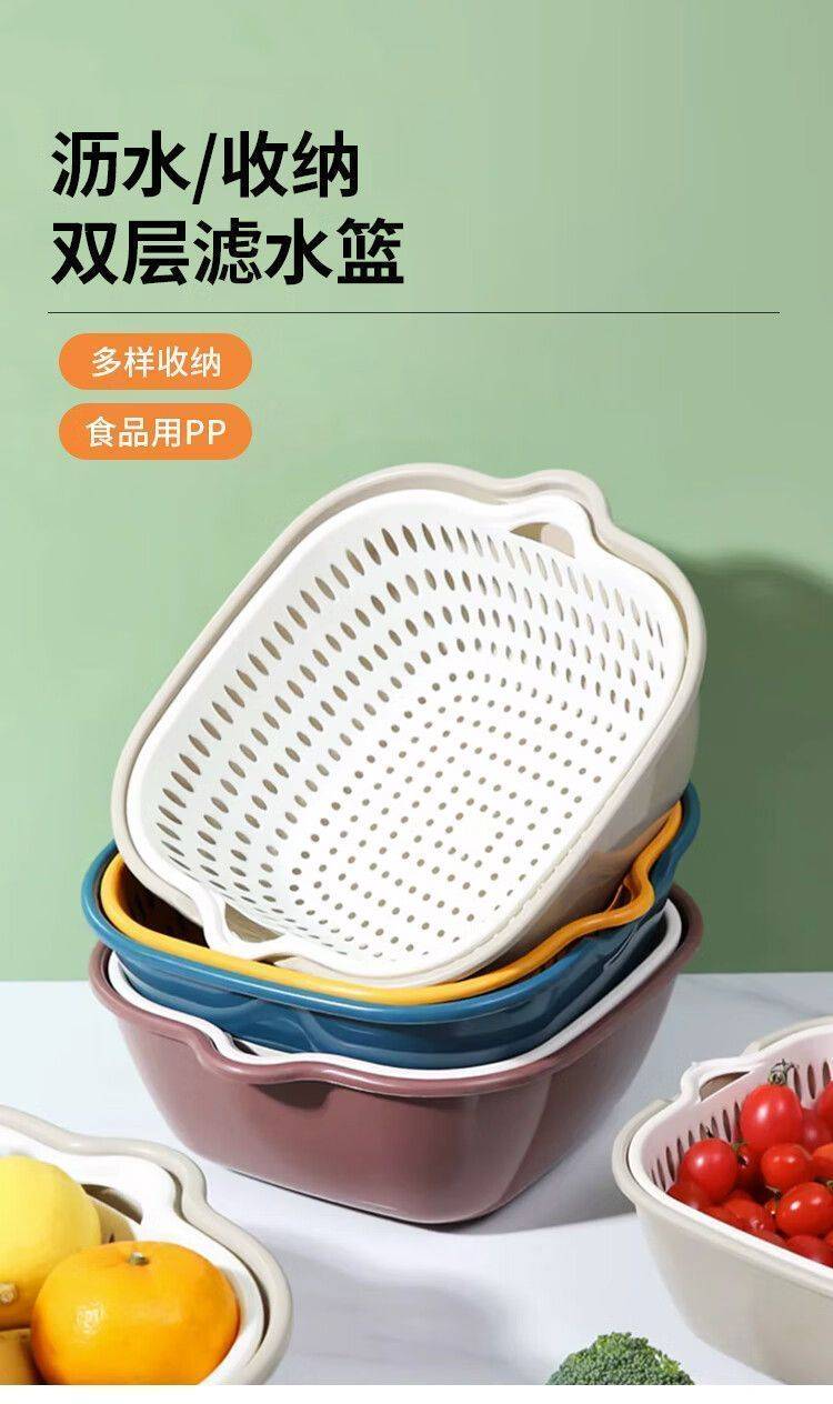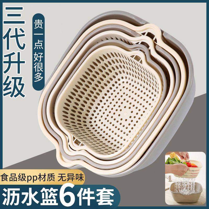 沥水篮双层洗菜盆厨房洗水果滤水篮淋家用漏水神器六件套洗菜篓子
