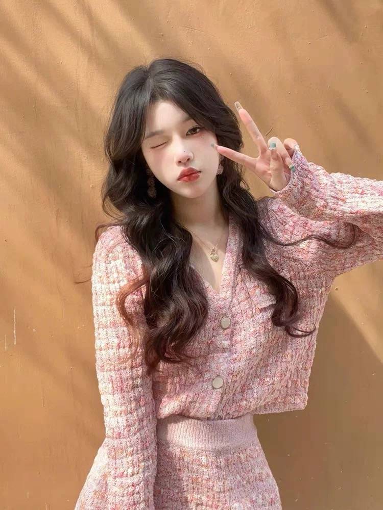 春装搭配一整套2025新款连衣裙小香风富家千金穿搭粉色开春套装女
