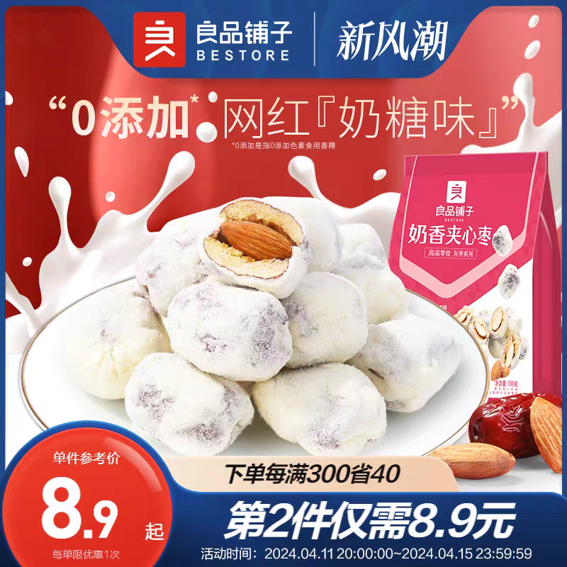 良品铺子奶香夹心枣100g红枣干货奶枣巴旦木夹心新疆特产奶酪零食