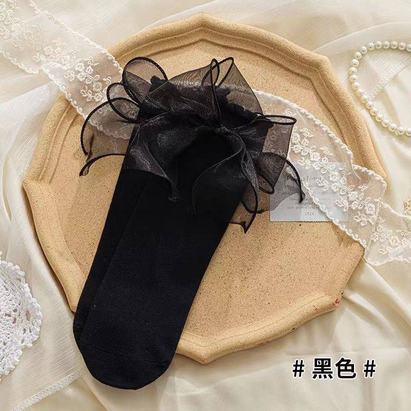 日系jk夏季薄款袜子女木耳边花边绑带蝴蝶结袜子软妹Lolita中筒袜