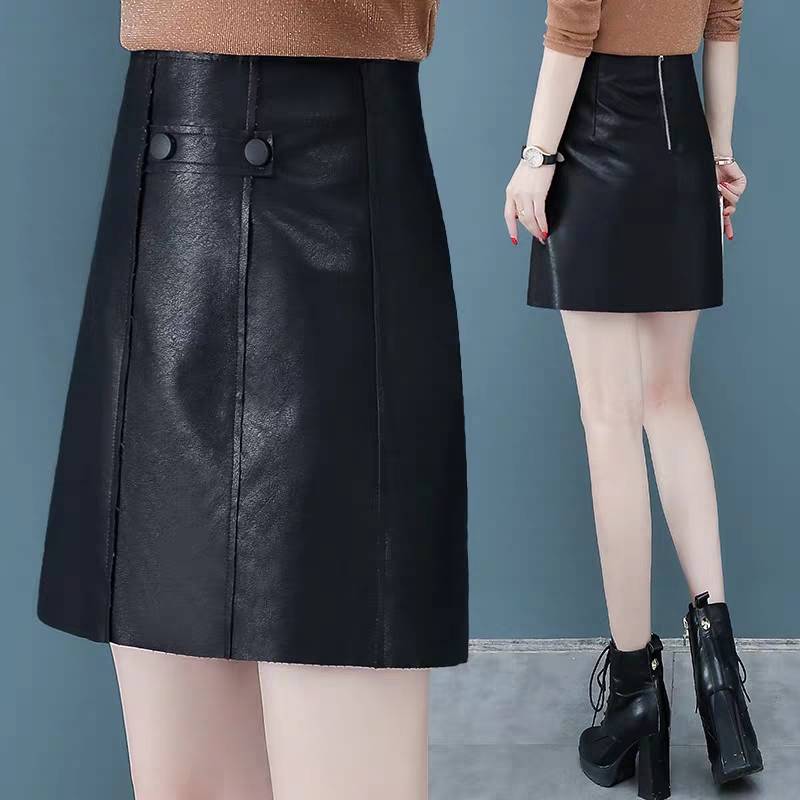 冬天配毛衣半身裙女皮裙2019秋冬季新款高腰包臀裙