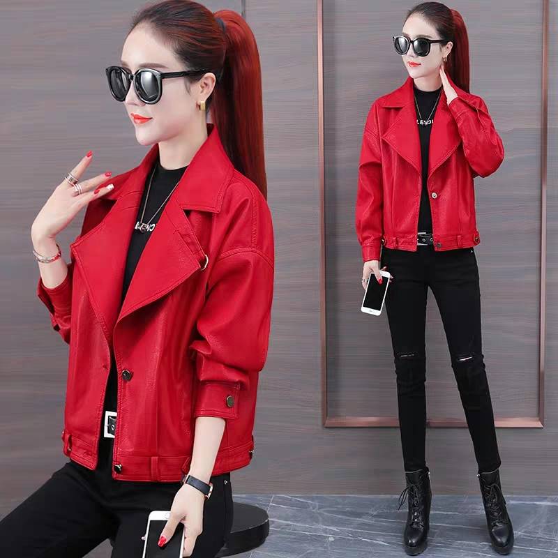 皮衣外套女春秋2019韩版宽松时尚短款上衣皮夹克外衣