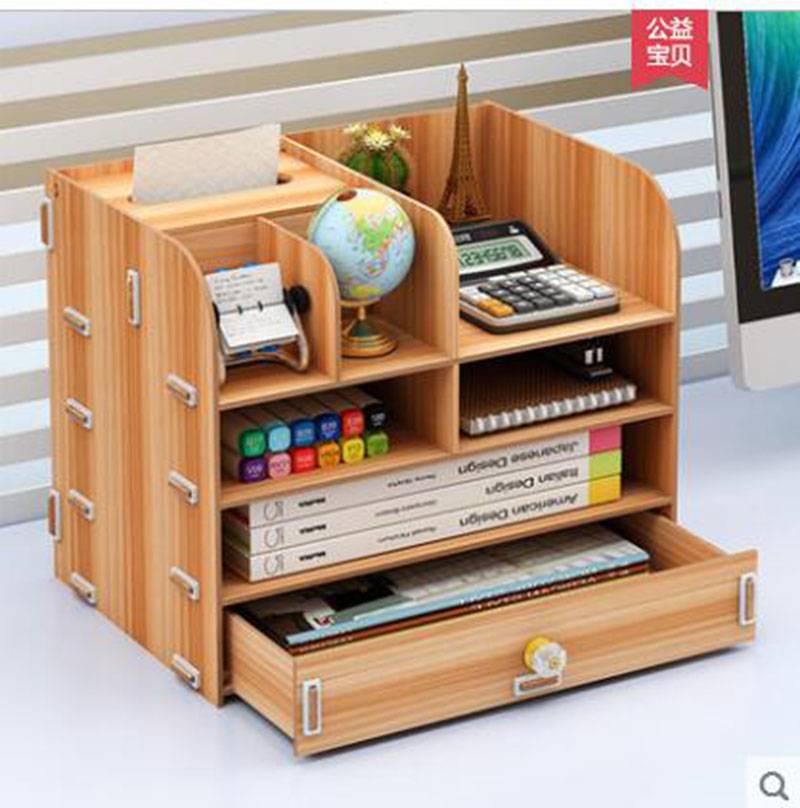 办公文件架资料收纳盒办公用品文件夹子多层学生用简易桌上书架木