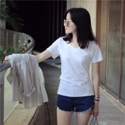 夏季新款女装韩版纯色印花拼接透视百搭短袖T恤全国包邮