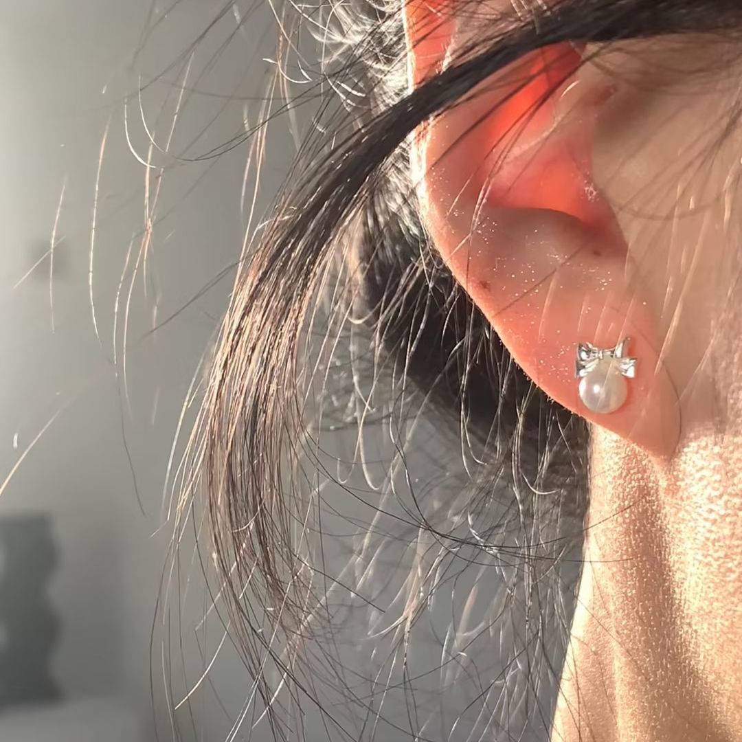 S999蝴蝶结珍珠纯银耳钉女精致高级耳饰2024新款时尚抗过敏