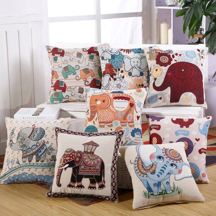 可爱卡通抱枕色织提花刺绣抱枕棉麻沙发舒适靠垫靠背床头靠枕含芯