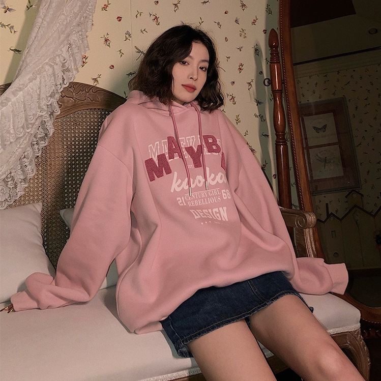 秋冬加绒加厚卫衣女连帽衫韩版学生宽松大码长袖上衣外套