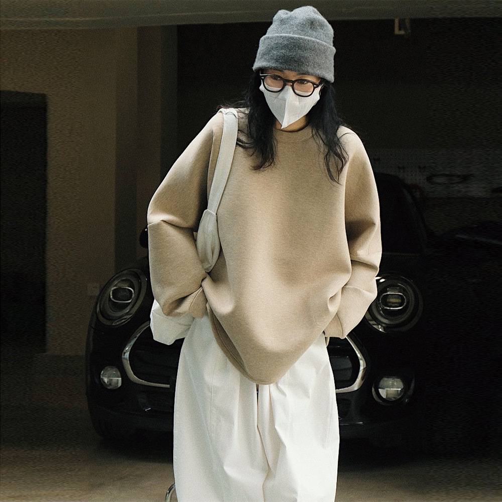 早秋新日系圆领廓形轻盈空气层卫衣果冻感亲肤休闲显瘦随性上衣女