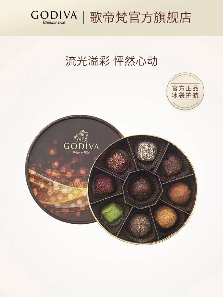 GODIVA歌帝梵流光溢彩松露形巧克力礼盒9颗装比利时零食纯可可脂