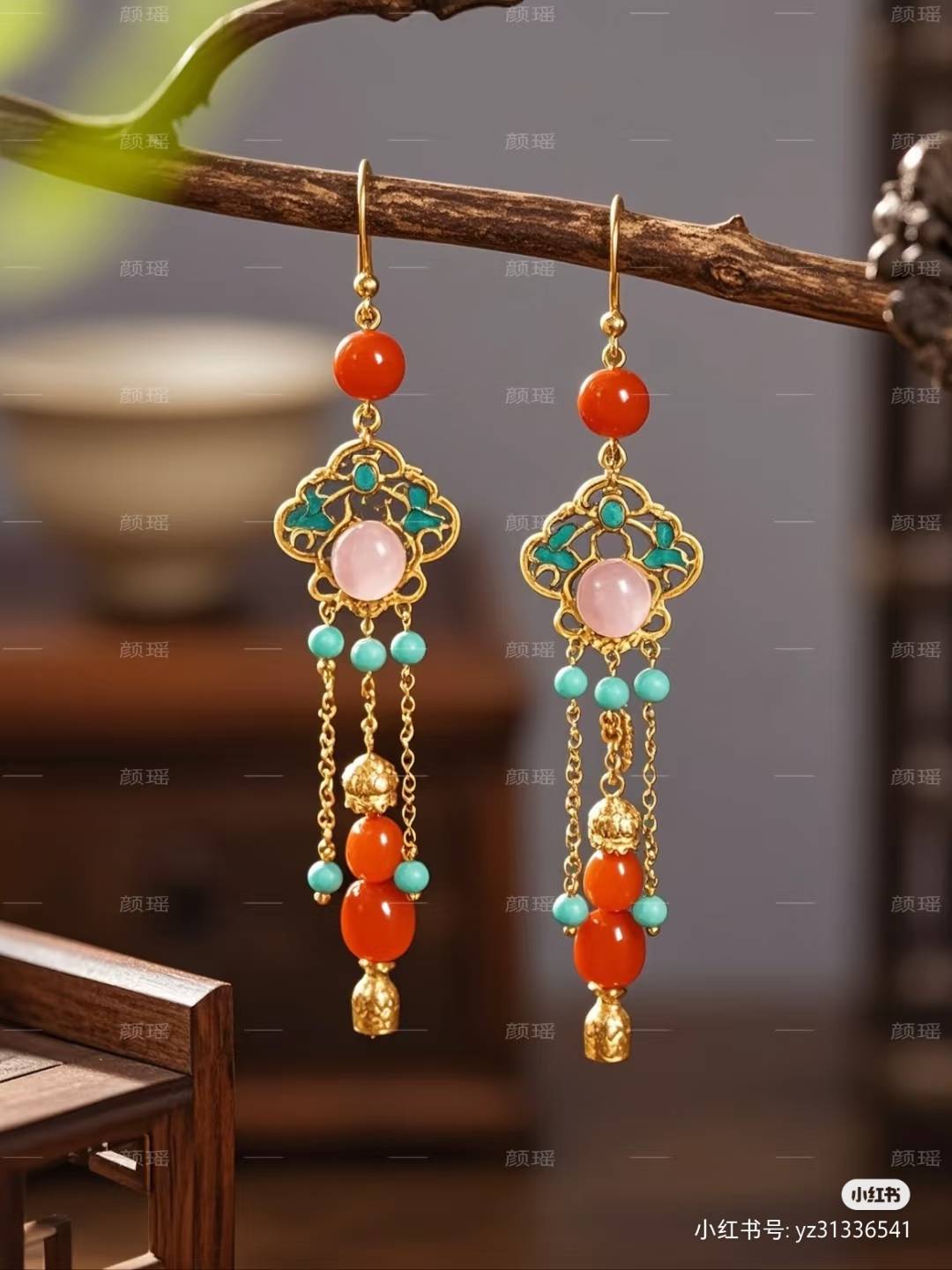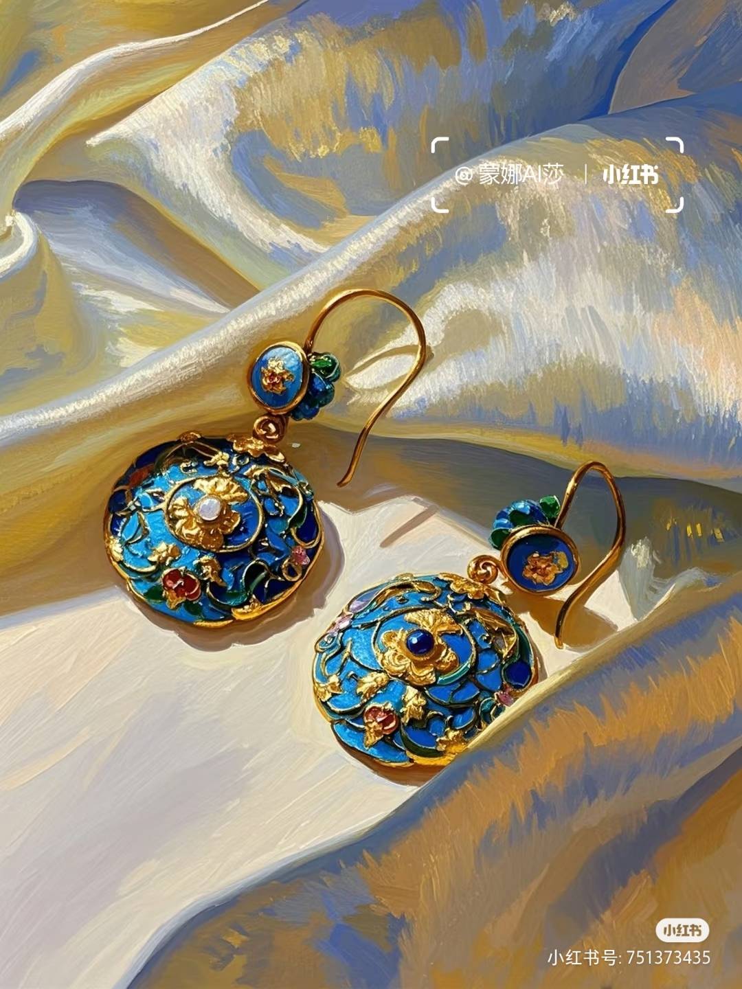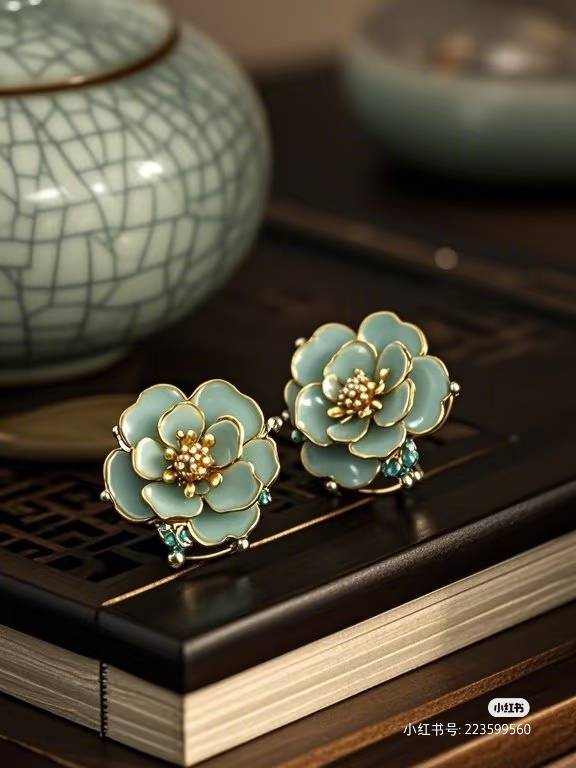 掐丝珐琅耳钉