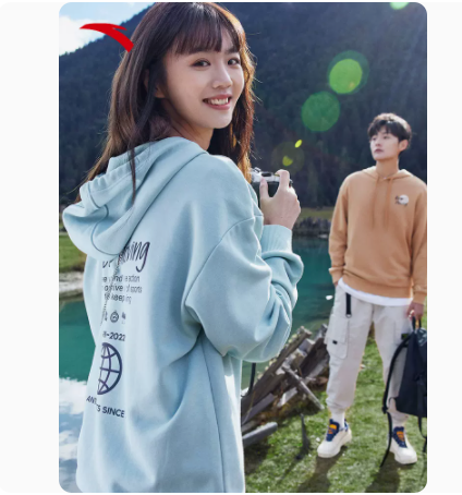 安踏卫衣男女同款2022秋季新款潮流宽松上衣连帽黑色套头衫长袖女