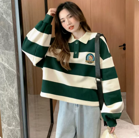 唐狮2022春秋装新款条纹女卫衣短款女士卫衣宽松小个子设计感小众