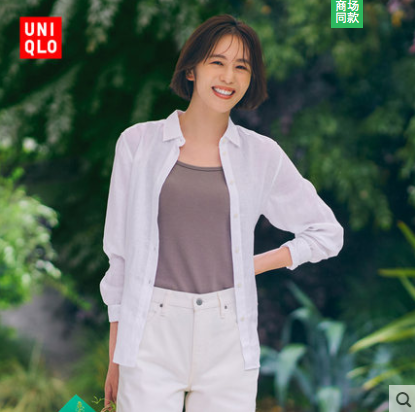 优衣库 女装 法国麻衬衫(优质亚麻 纯色 长袖衬衣)446845