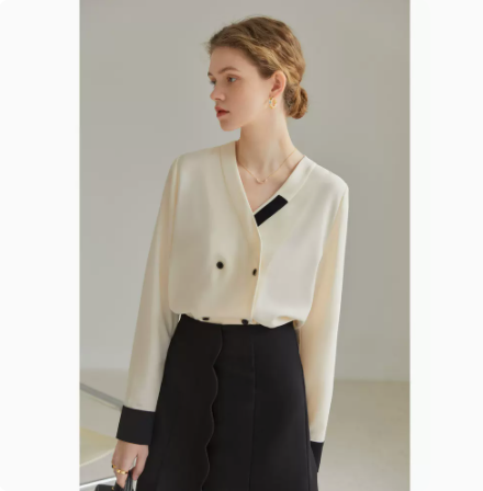 范思蓝恩22FS1769法式职业衬衫女设计感小众春秋气质宽松V领衬衣