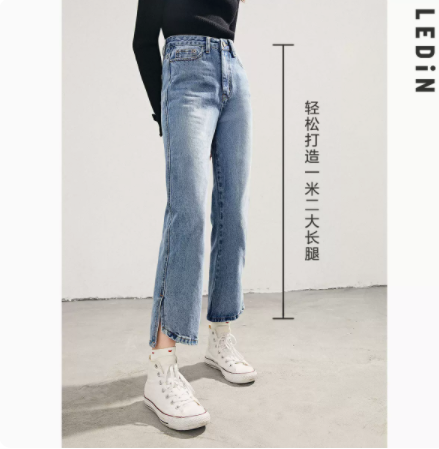 乐町牛仔裤女宽松高腰2022春季新款女装直筒裤女开衩喇叭裤长裤