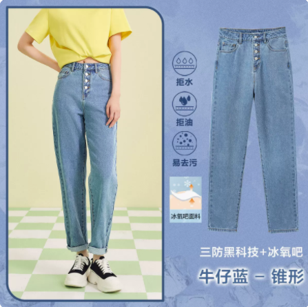 太平鸟三防锥型牛仔裤女2022秋季高腰显瘦白色直筒裤子锥形萝卜裤