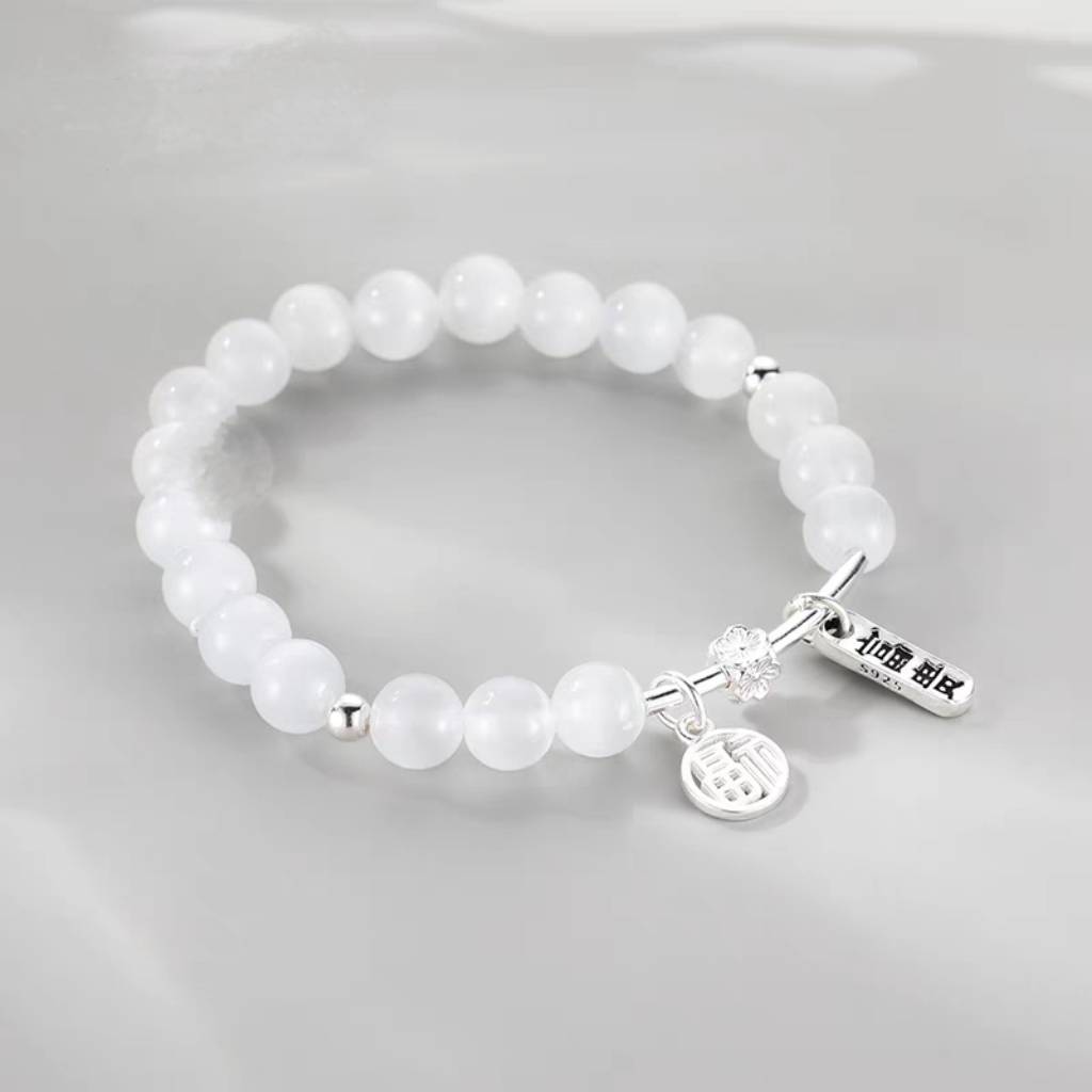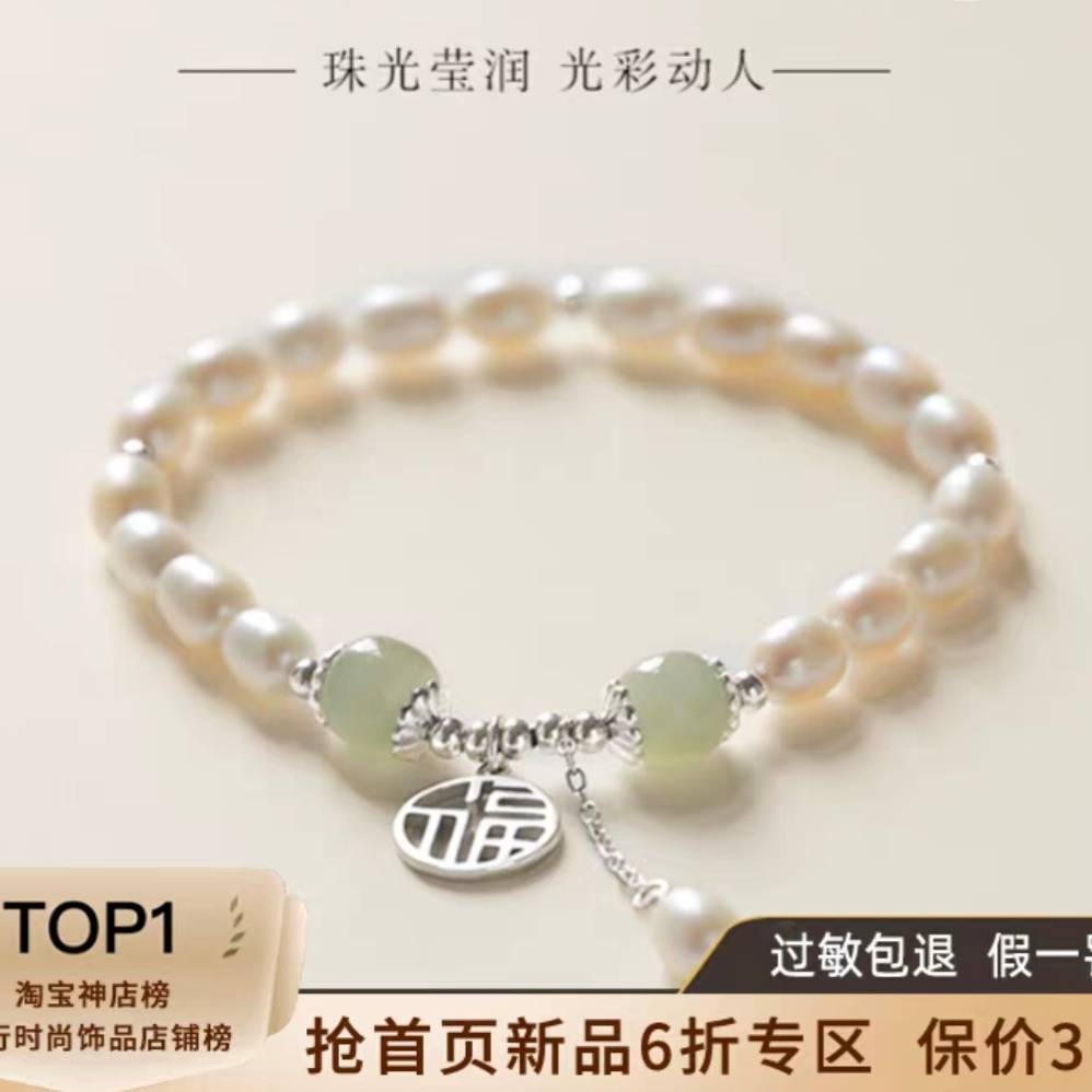 s925银饰珍珠手链女生轻奢和田玉手串福牌送闺蜜女友生日礼物手镯