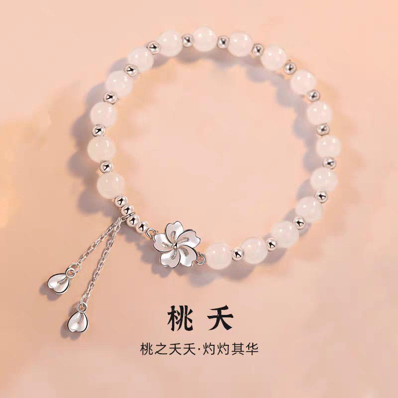 桃之夭夭和田玉手链女生纯银轻奢小众精致玉石手串生日礼物送女友