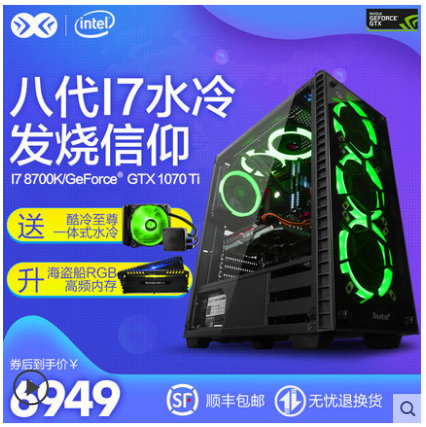 水冷i7 8700K 1070ti 吃鸡组装整机