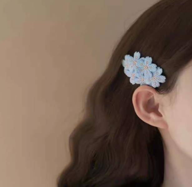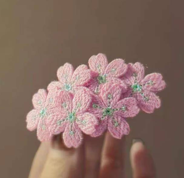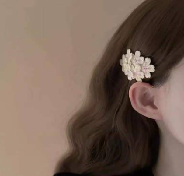 青涩春日少女甜美樱花发夹针织刺绣花朵刘海侧边夹碎发饰新款头饰