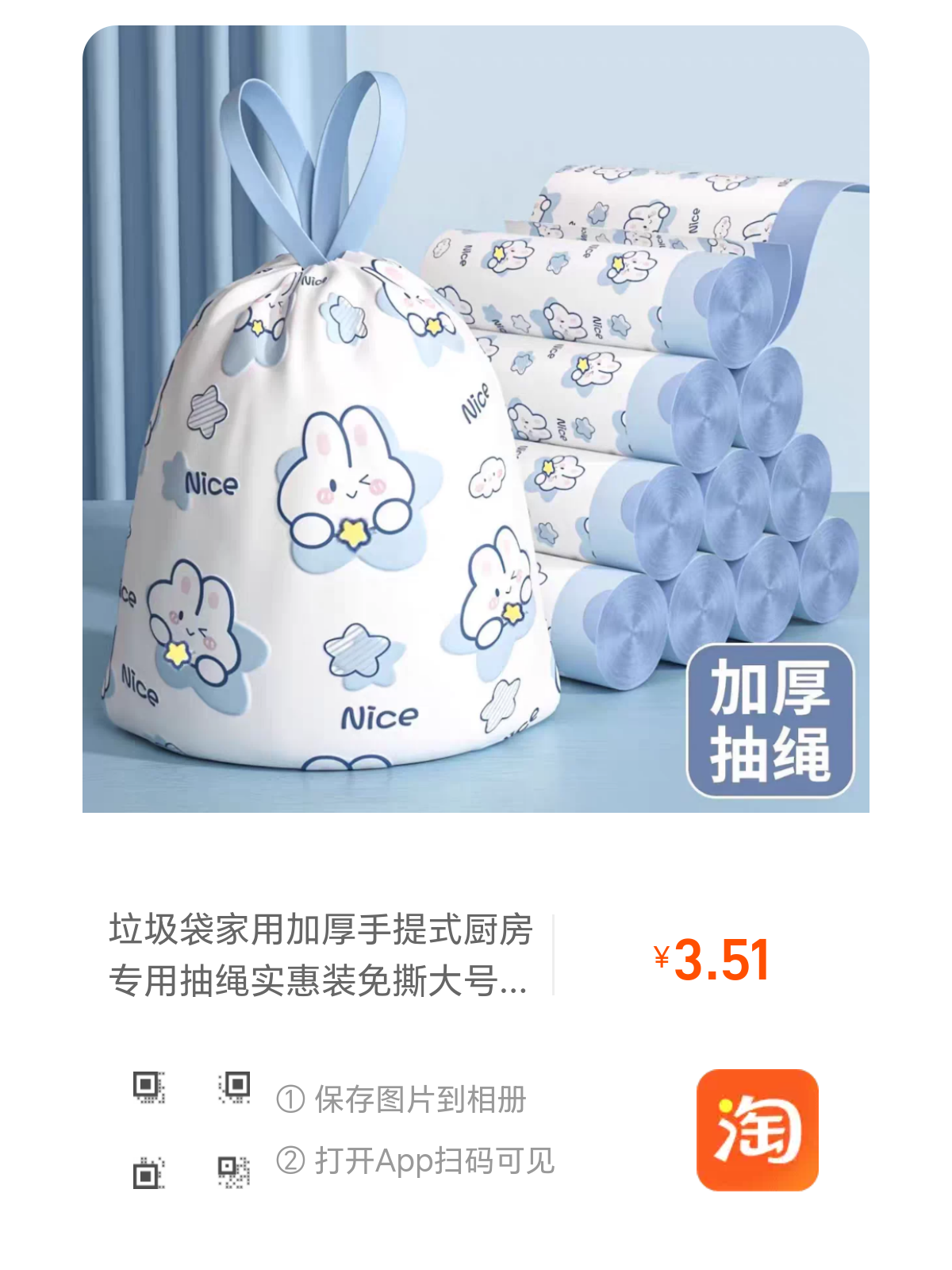 垃圾袋家用加厚手提式厨房专用抽绳实惠装免撕大号清洁袋塑料袋